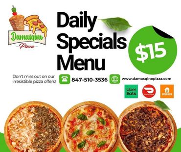 Enjoy mouth-watering pizza with your family and friends from Damasqino Pizza.